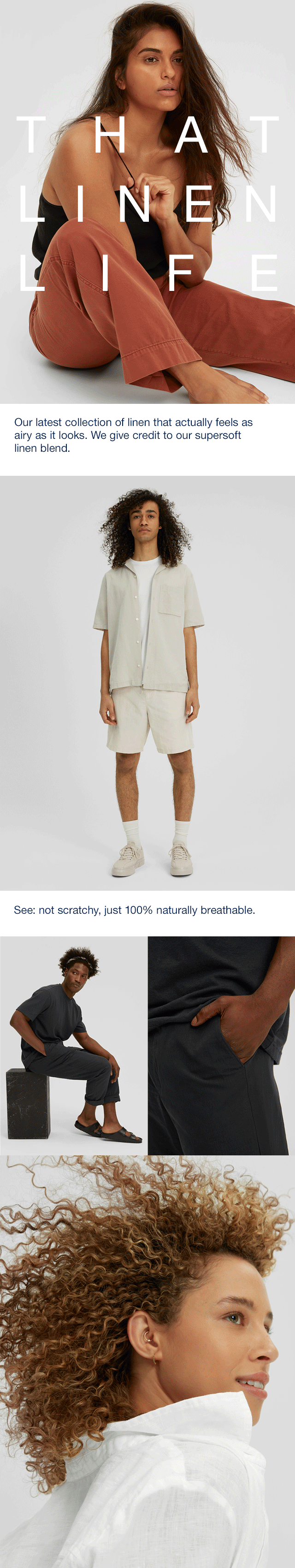A fabrication story. Cool linens, neutral colors and lounge styles.